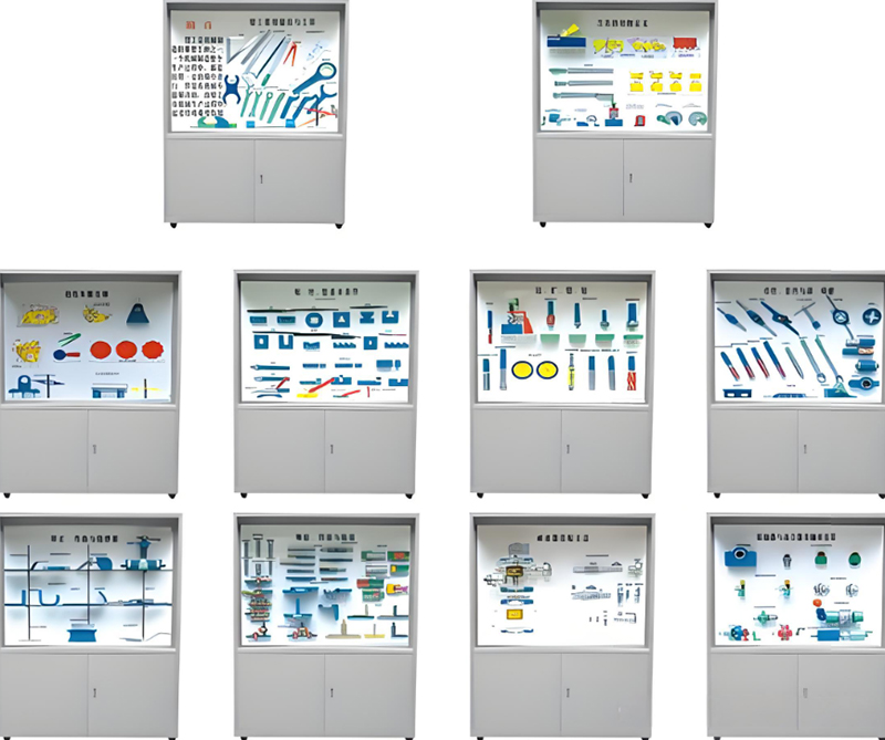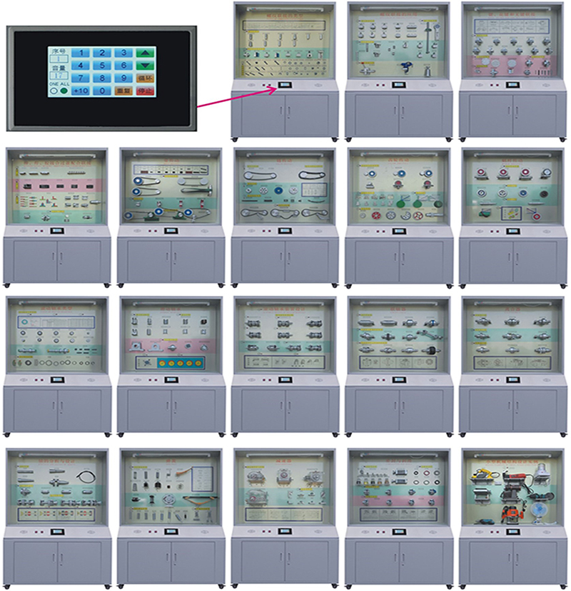 機(jī)械陳列柜,機(jī)械教學(xué)陳列柜,機(jī)械示教陳列柜,機(jī)械實(shí)訓(xùn)設(shè)備,機(jī)械原理實(shí)訓(xùn)室設(shè)備是按照根據(jù)大中專院校、職業(yè)學(xué)校的教學(xué)大綱設(shè)計(jì),采用多媒體聲控同步解說(shuō)演示,框架鋁合金結(jié)構(gòu),模型材料采用有機(jī)玻璃及硬塑制作而成,板面面板采用高強(qiáng)度室外寫(xiě)真覆壓膜材料為底色,每柜進(jìn)行彩噴圖文說(shuō)明,通過(guò)演示可加強(qiáng)對(duì)機(jī)械專業(yè)學(xué)生的理論學(xué)習(xí)、使用范圍增強(qiáng)認(rèn)識(shí),加深理解,是機(jī)械專業(yè)系不可缺少的理想教具設(shè)備。
